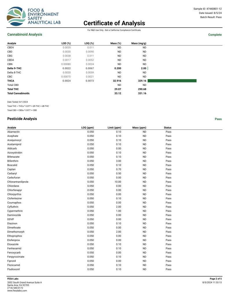 The terpene profile is dominated by caryophyllene, contributing pepper-like notes and potential anti-inflammatory properties, complemented by limonene (citrus) and humulene (hoppy), creating a complex and appealing aroma profile.