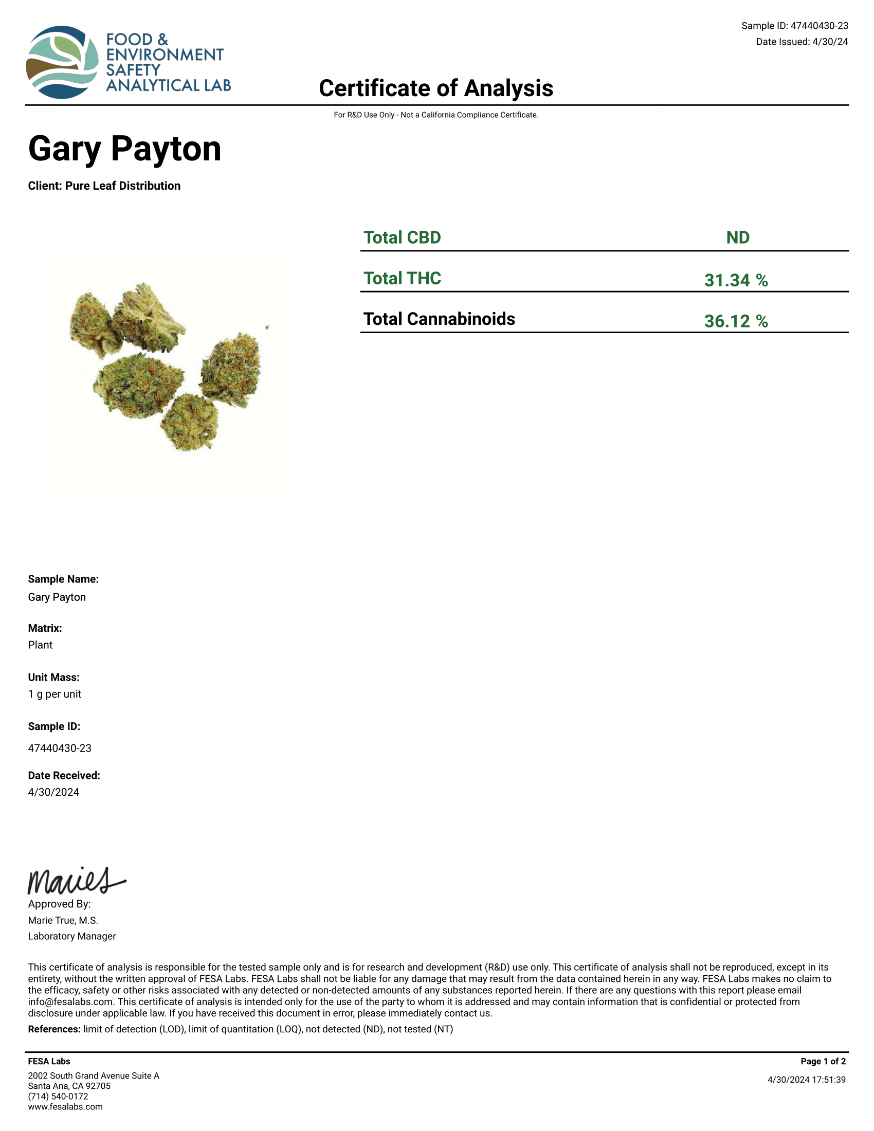 - Total CBD: ND (Not Detected)
