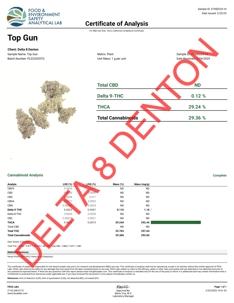 Top Gun’s terpene profile contributes to its distinctive sweet candy-like aroma balanced with earthy, nutty notes. The complex terpene blend supports both the strain’s calming effects and its ability to maintain mental clarity.