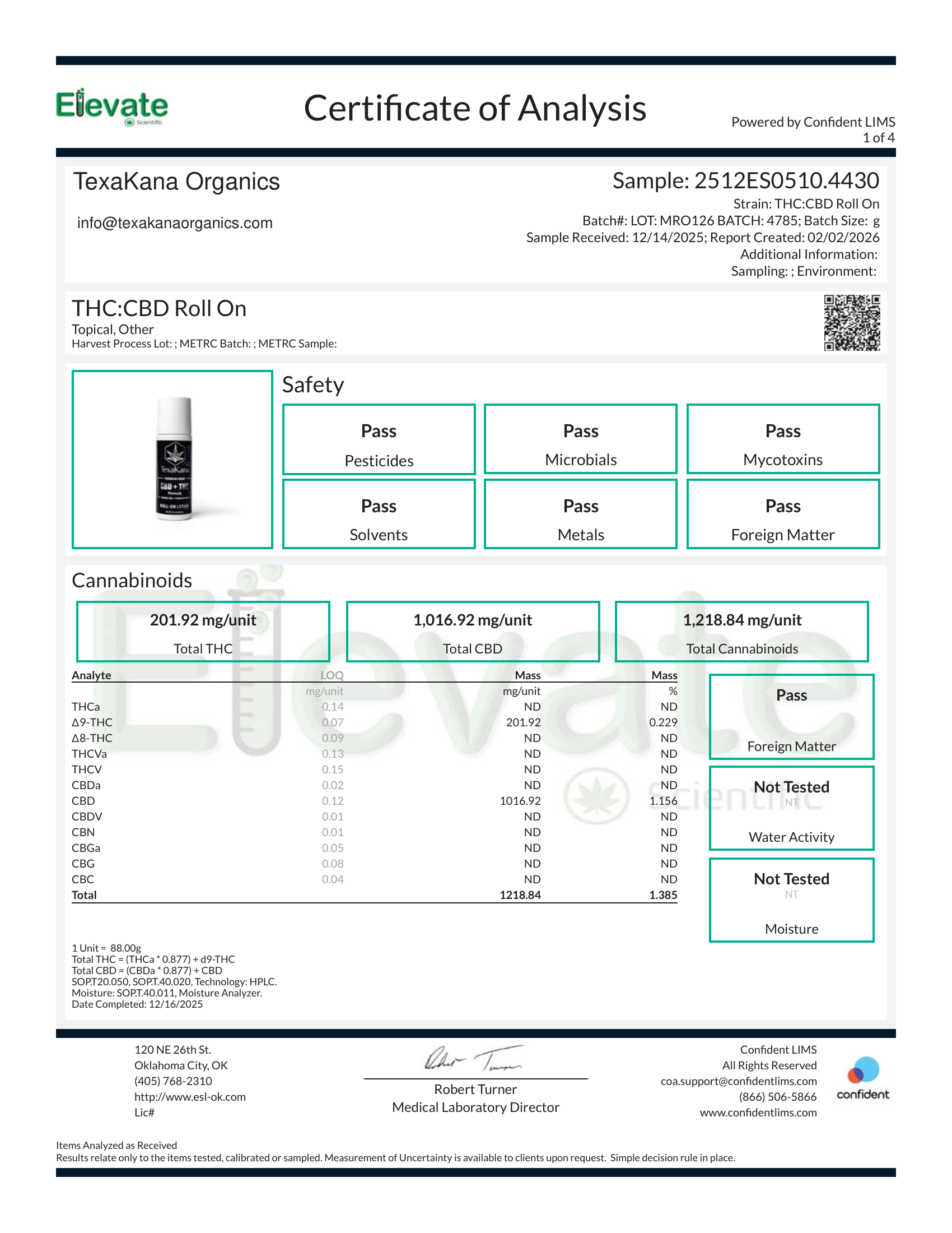 Product Name On CoaTHC:CBD Roll On