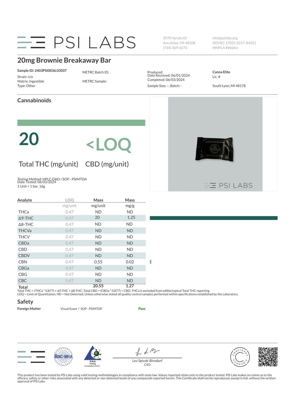Each Breakaway Bar contains 20mg of Delta-9 THC and is made with premium ingredients to ensure exceptional quality in every bite. The convenient breakaway design allows for precise dosing, giving you complete control over your experience.