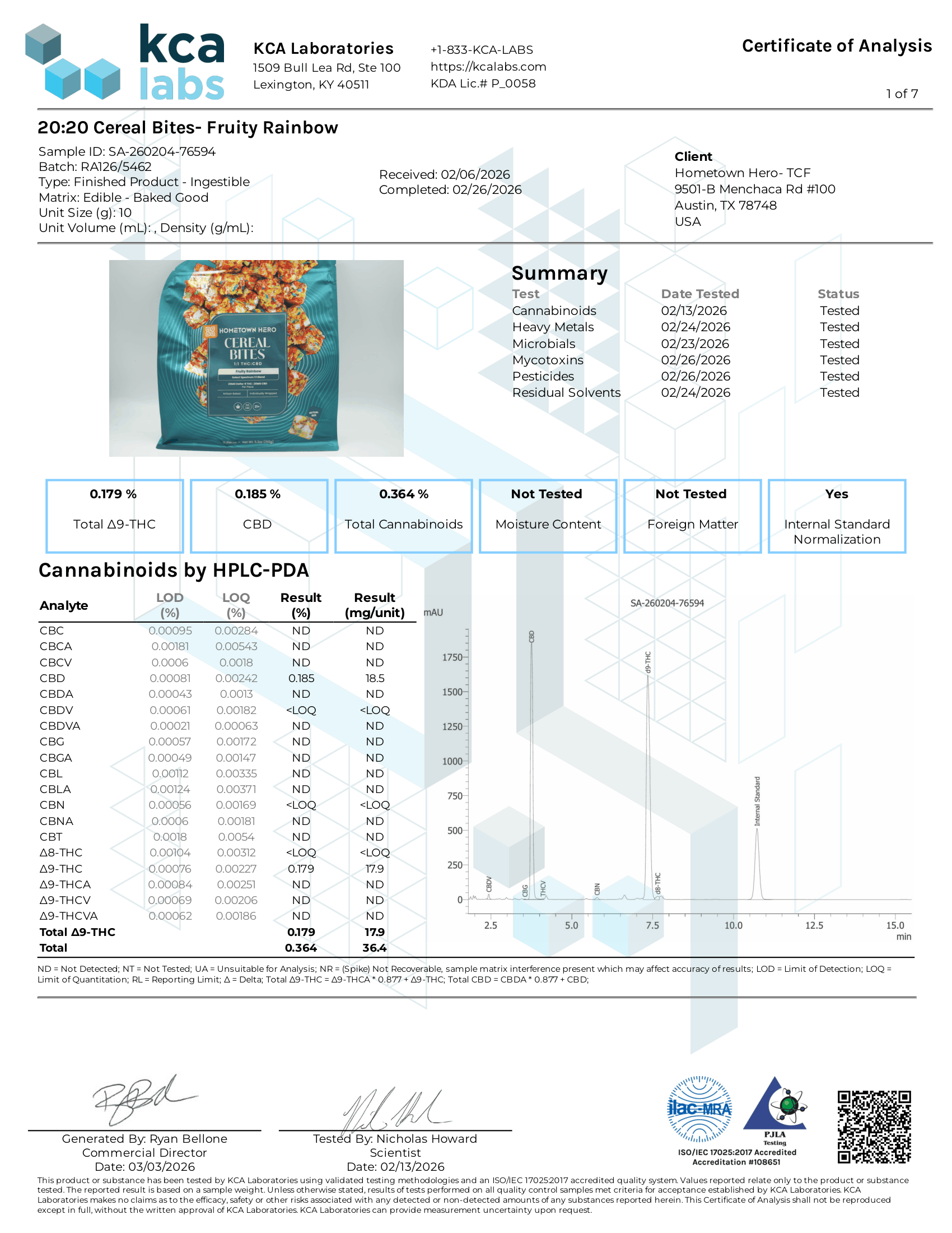 Cereal Bites COAs