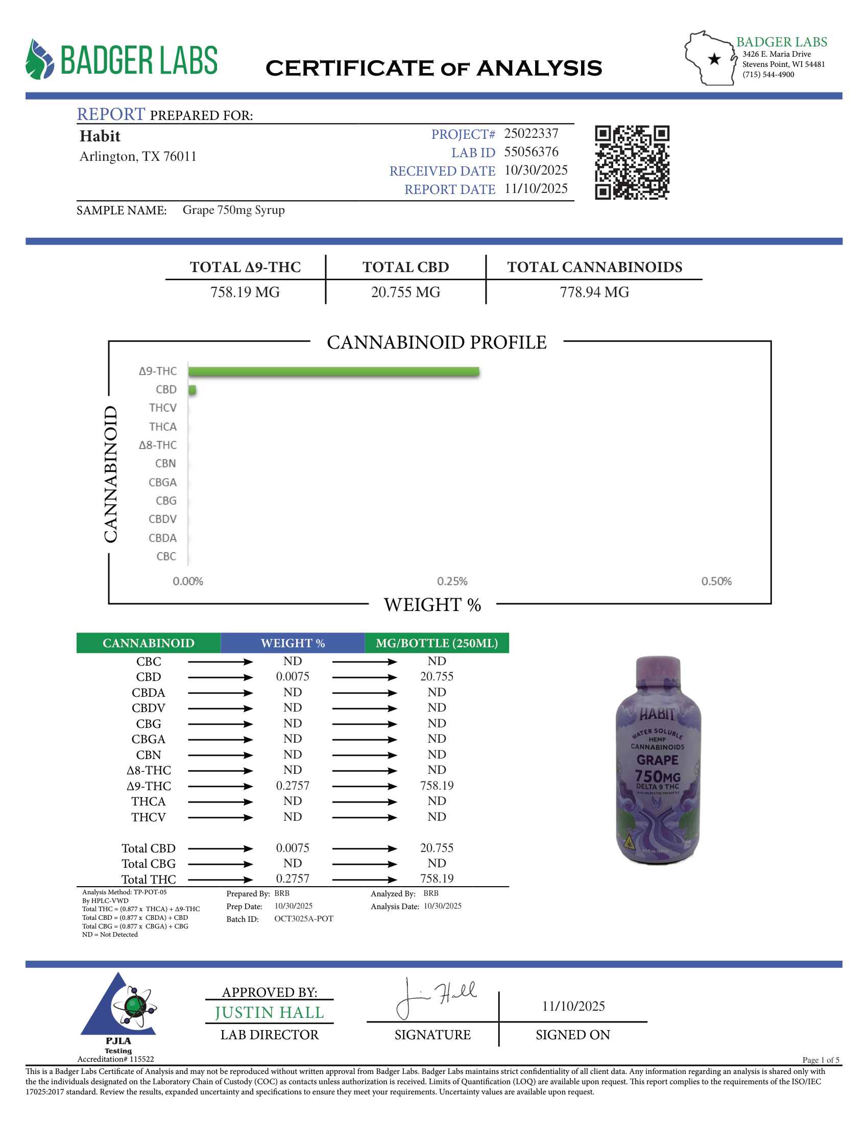 Delta 9 Syrup COA