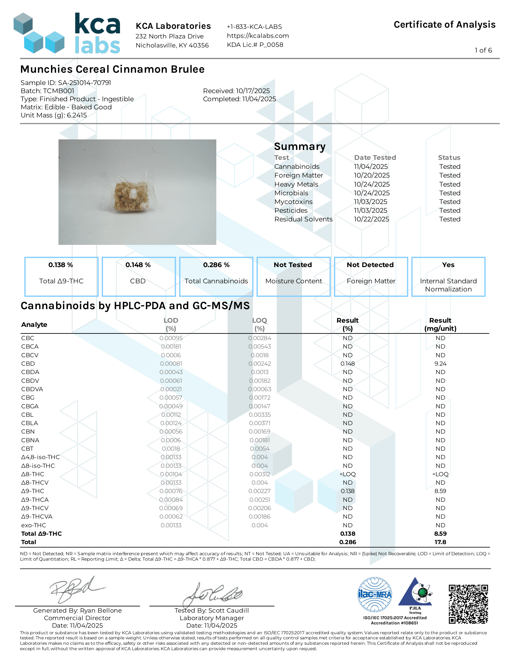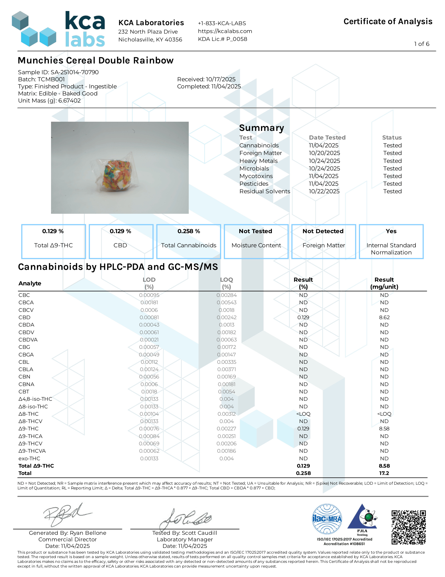 Munchies Cereal Crunchies COA