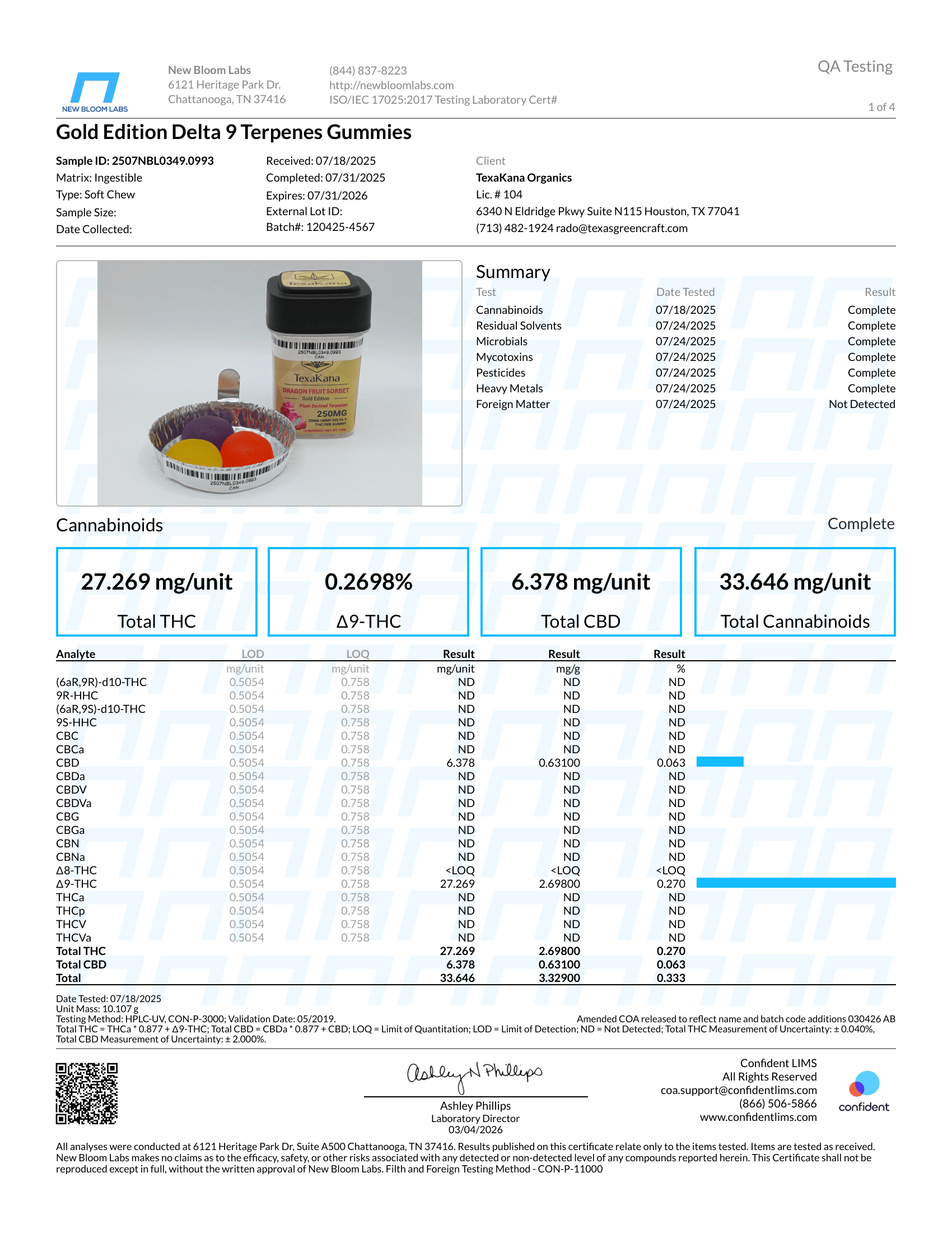 Each Texakana Single Gold Gummy uses the same terpene-enhanced formula as the full-size Gold Edition jars: